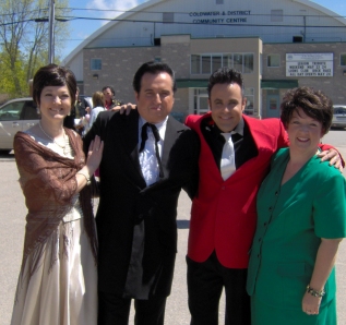 Wendy King covered the upstairs shows This was my first introduction to both Coldwater and the special tribute weekend held every May. I loved it! Doug Mckenzie told me Ii would not believe the hospitality from this little town and boy, was he right. Everyone was so friendly and helpful. Darlene did a superb job of organizing everything and having it run smoothly. At last report it’s believed the weekend brought in 15 thousand dollars (and that's with offering the entire weekend of entertainment for free) Nevin has already commented on the fun of the parade and what was happening downstairs at the legion, but I was upstairs where it was non stop entertainment from noon til 10 p.m. when the karaoke continued downstairs. A few of the highlights (and there were many) included Doug McKenzie and Dawn Peddie's duet of the Roy Orbison classic "cryin'". It gave me shivers. The same can be said of Dawn Peddie sharing the mic with Rick Duin as Johnny Cash and singing " Jackson "....just amazing sound! Cathy Carbone was Barbra Steisand and I was blown away with her vocals. I'd never heard Cathy sing before and I guess we know now where Anthony Carbone gets his talent (not to leave out drummer Dad Michael). Jeff Marsh came out in a great black and red shirt with lightning bolts as he launched into some Garth brooks hits. (How does he remember all the words to ain't goin' down til the sun comes up?). As for the various Elvis tribute artists, it was great to see how all these entertainers have grown and honed their talents. James Gibb had the upstairs rocking nonstop with his early Elvis tribute. The guy moves so fast he left scuff marks on the floor! His version of "I believe" was fantastic. Joey Cundari also rocked the house showing he can not only do 50s and 60s movies, but 70s Elvis. Great job with suspicious minds. Rick Duin managed to switch gears from Johnny Cash to Elvis and does them both so very well. John Cigan provided a fantastic 70s Elvis set with his smooth tones. Jamie Hoffman did a great version of "Its A Wonderful Life", and Herb Neher donned his black jumpsuit for some 70s ballads. Our upstairs emcees were Robert Pooran whose renditions of Elvis' ballads and movie songs are always so smooth and lovely, and Terry James and his oversize martini glass as Dean Martin and Sammy Davis junior. Let's not forget the kids who just keep getting better and better. Brycen and Brenan Katolinsky, Zachary Peddie and Mason Cigan. We feel like we've watched them all grow up! Speaking as a fan, I had a great time and enjoyed every single performance. Can't wait for next year to spend more time with our new Coldwater family! Wendy King