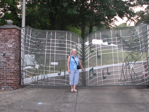 The happy travellers in front of Elvis' cottage at Coco Palms
